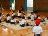 2年生のスポーツテストを5年生が手伝ってくれました。「こっちにおいで。」「しっ...