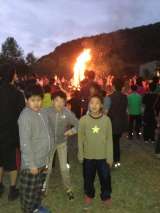 今夜は、キャンプファイヤーに代わって、子ども会です。弦巻小学校の演し物は、河村版...