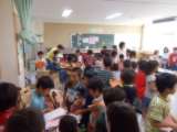 今朝も曇りです。デモ、園庭で朝会をすることができます。熱を出している子もいません...