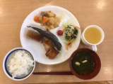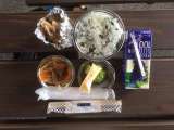 6月29日(木) 2日目 夕食 おかずのお皿にマスの塩焼きがのり、ちょっと豪華...