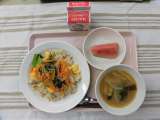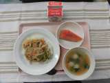 スタミナ丼 春雨スープ 小玉すいか 牛乳 米(秋田) にんにく(青森) しょう...