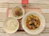 ごはん ピリ辛肉じゃが ごま酢かけ 牛乳 米(岩手) にんにく(青森) 玉ねぎ...