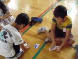7月24日(日)のワークショップ 体育館で“バトントアリング”では、バトンの回し...