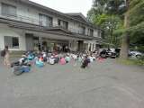 今回は、二つの宿舎に分かれて宿泊しています。 二つの宿舎の間にある駐車場で朝会を...