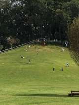 広い芝の坂をゴロゴロ転がる。シンプルですが、これが一番楽しいようです。