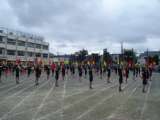 開始時刻が近づくと、雨がふってきて、どうするかとてもなやみました。 3年生が並び...