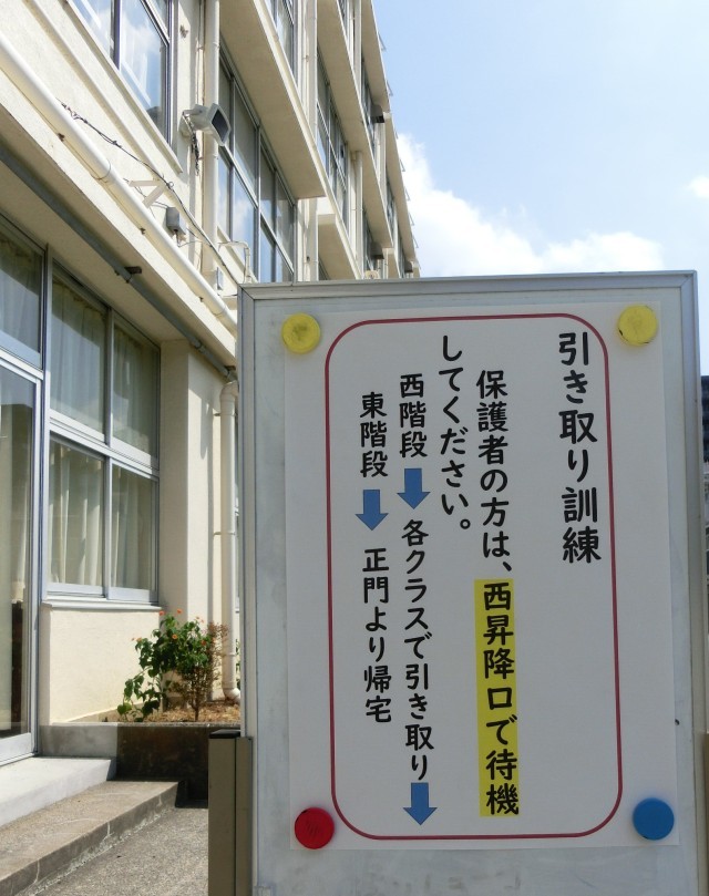9月1日防災の日、緊急時の対応に基づき、保護者が生徒を引き取る訓練を行いました