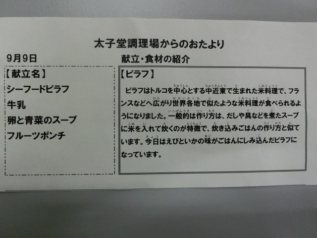 9月9日の給食