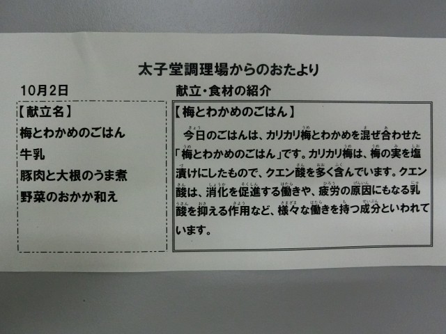 10月2日の給食