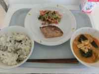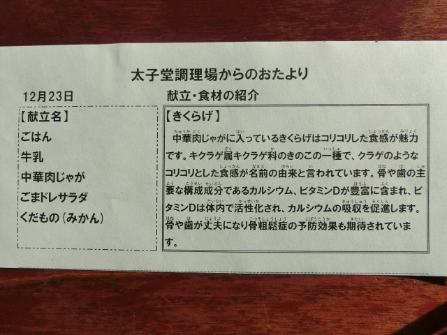 本日の給食は、「ごはん、中華肉じゃが、ごまドレサラダ、くだもの(みかん)、牛乳」です