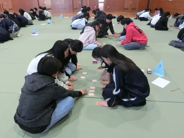 新春恒例の百人一首大会が開催されました。1年生は畳の上で白熱した戦いを繰り広げていました。