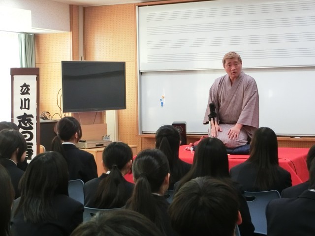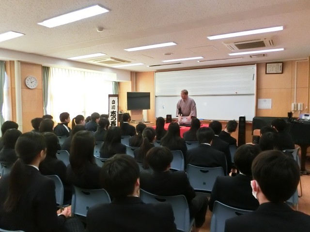 落語家の立川志の春さんを講師にお迎えして、落語教室が開かれました。2年生は、笑いと人情のつまった落語を楽しみました。