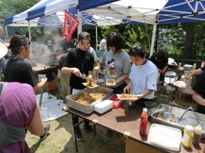 今日は9時半から、ボランテイア活動に55名参加して、おまつりの手伝いを一生懸命やっています。