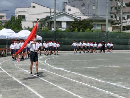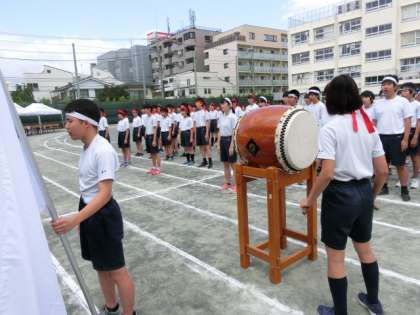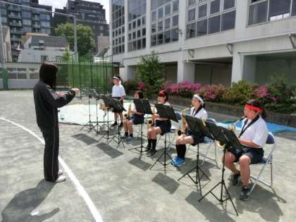 明日は雨なので、今日朝準備をして、2時間目から予行を行っています。吹奏楽部も1年生が3名入り、「若い力」も歌いました。