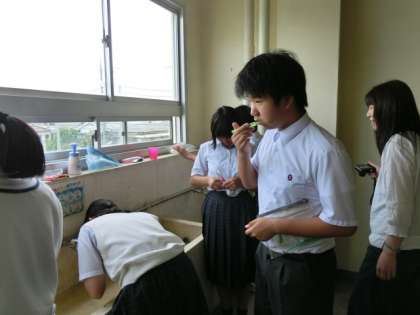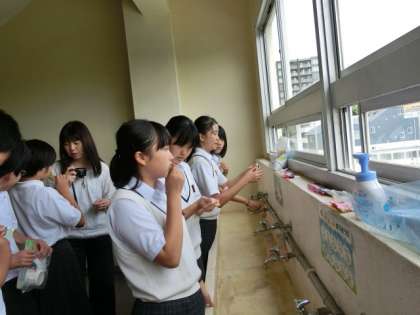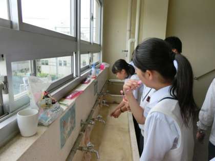 教育テレビのキャラクター「はながっぱ」の歯磨きミュージックが校内に流れ、みんな歯磨きをしていました。