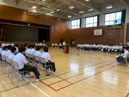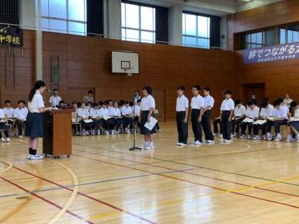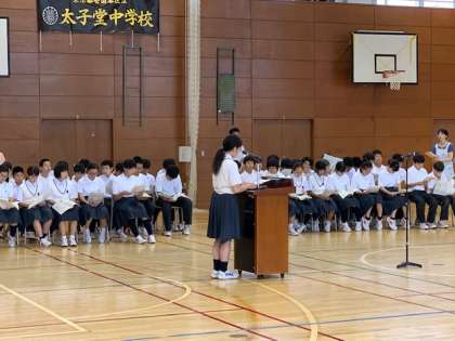 とても緊張しましたが、しっかりと生徒会活動のことを話し合い、生徒の力を一つにして、より良い太子堂中学校をつくります。