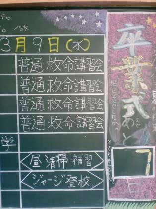 写真は、3月9日3年A組教室の生徒登校前の風景です。
