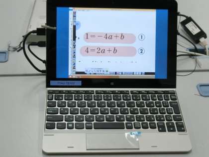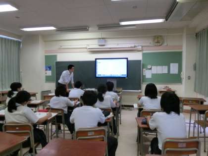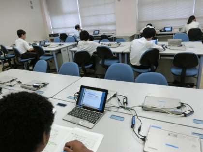 基礎と標準のクラスに分かれて、片方は1人1台ずつパソコンで先生の解説を聞きながら、問題を解いています。