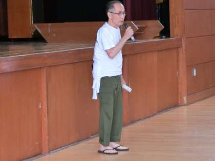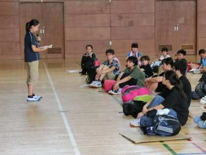 第22回のサバイバルキャンプの開会式です。神田会長・小林校長の挨拶に続き、小学生代表挨拶。