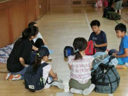 中学生の班長を中心に自己紹介。太中生しっかり班をまとめて立派です。