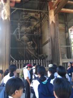 東大寺では大仏の鼻の穴と同じ大きさの穴を男子数名がくぐりました!