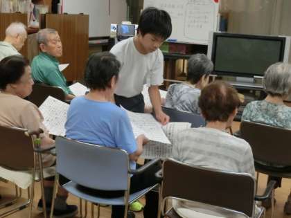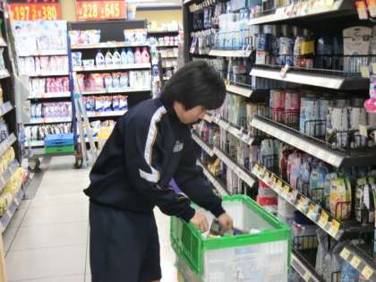 デイホームでは歌詞カードを配り、パン屋では焼きあがったパンを並べ、スーパーでは品出しを頑張っていました。