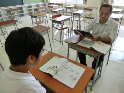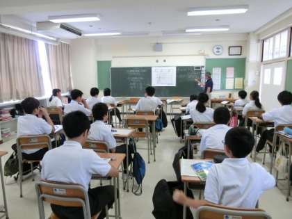 B組英語は隣同士で教科書を音読し、隣の教室ではALTのウイリー先生の前で支持されたページを音読し「GOOD JOB」と褒められ、教室に戻るとき「緊張した〜」と。A組理科は昨日のまとめを。今日から中間テスト2週間前です。しっかり頑張りましょう!!