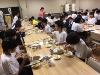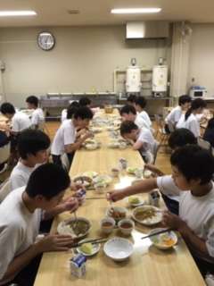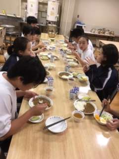 今日の夕飯はカレーです。みんな元気にモリモリ食べています!おかわりも沢山あります。