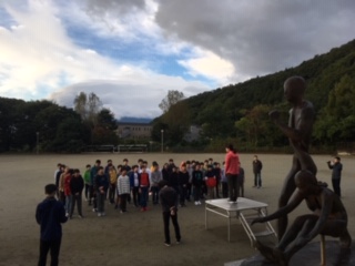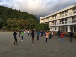 おはようございます。雨も上がり、さわやかな朝です。みんな元気に時間で集合して朝礼をしました!