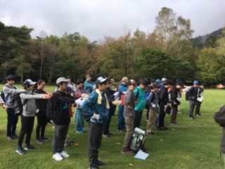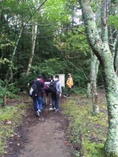 野鳥の森をスタートし、風穴でソフトクリームを食べます。晴れ間も見え、暑いくらいのOLになりました。みんな頑張っています。
