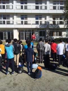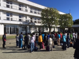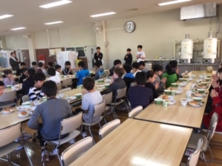 朝食を終えて、閉園式をしました。今日は富士山5合目へ向かいます。