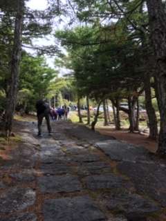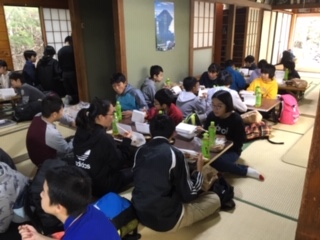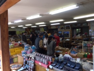 5合目から奥庭荘へ。急な坂道を降りて、お弁当タイム。美味しいけんちん汁をたくさんお代わりして、お土産を買いました。