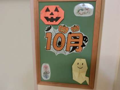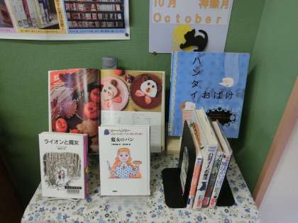 保健室の入口と図書室には、司書さんが、可愛いハロウインの飾りつけをして、おすすめ本も・・・図書室に足を運んでみてください。