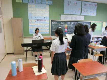 今朝も、パートごとに分かれて熱心に歌いこんでいます。合唱コンクールまであと10日。朝練・昼練・放課後練と練習を重ね、26日素晴らしいハーモニーを楽しみにいらしてください。