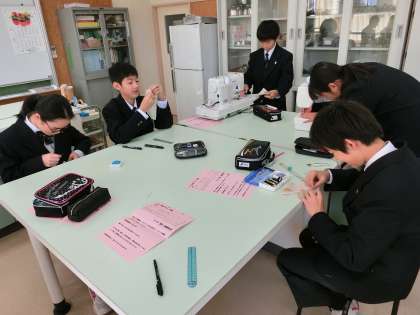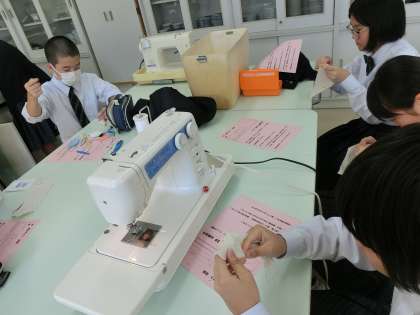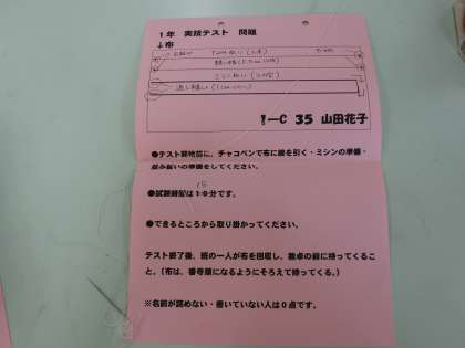 15分間の手縫いとミシン縫いの実技テストを行っていました。みんな真剣です。
