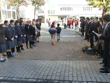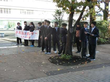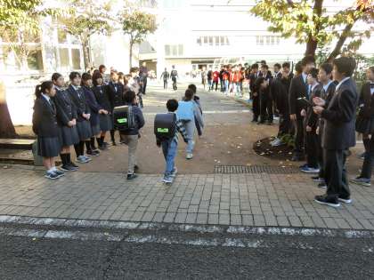 今朝は太子堂小学校で、ふれあい挨拶デーが行われました。40名ほどの生徒が参加しました。