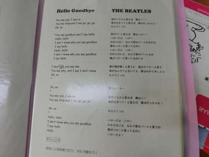 授業始めに、今日はビートルズのどの曲を歌うか、4曲から多数決で、今日は「HELLO」をみんなで大きな声で歌っていました。最後の間奏で、「れいわ〜しょうわ〜」と歌ったのにはビックリでした。