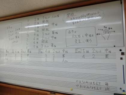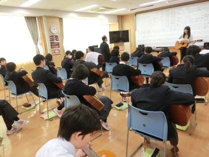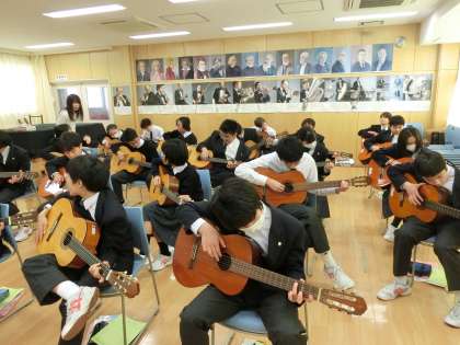 クラシックギターを1人1台抱えて、指使いを習った黒板を見直しながら、「ドレミファソラシド」を真剣につま弾いていました。