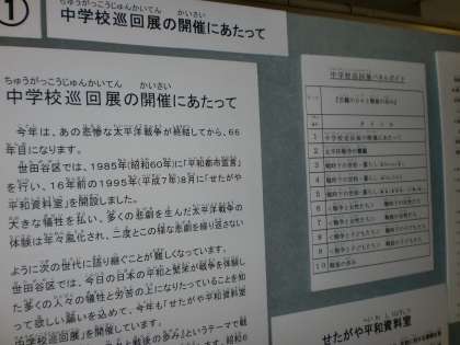 「せたがや平和資料室の中学校巡回展」