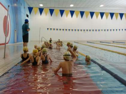 水深が深く、危険防止のため、スポーツ振興財団の協力も得て、ウォーキング用の台を設置してもらいました。
