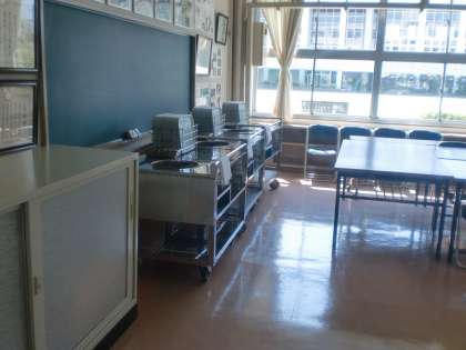 本校の給食は、太子堂調理場からの配送です。小学生3クラス分が通常より多くなります。ワゴンは配膳室には入りません。