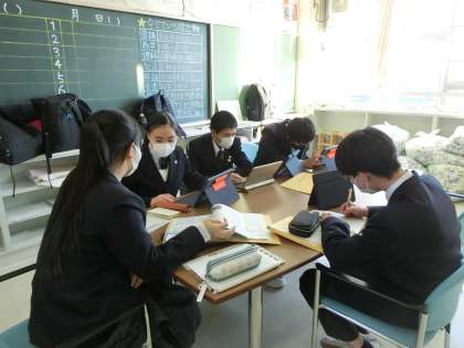 1月14日 委員会が行われました。各委員会で振り返りと今月の活動について話し合われました。写真は委員会の様子です。