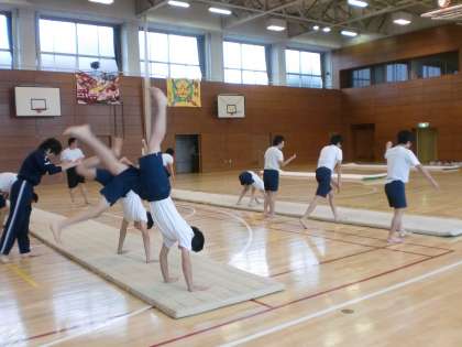 現在(10月初旬)、保健体育では「マット運動」を全学年・男女とも実施しています。