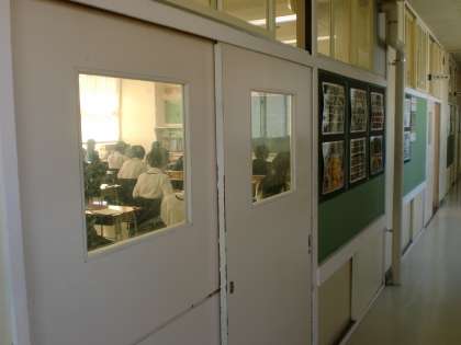 写真は、1日目3時間目「社会」、1年教室を廊下から撮ったものです。
