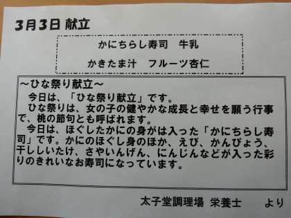 3月3日の給食