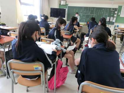 「ペットを飼うことを人にすすめるか」ということをテーマに、自分の考えをノートにまとめ、お互いに理由付けをしながら討論会を行っていました。他者の意見を受け入れ、自分の意見を言う活動を実践していました。