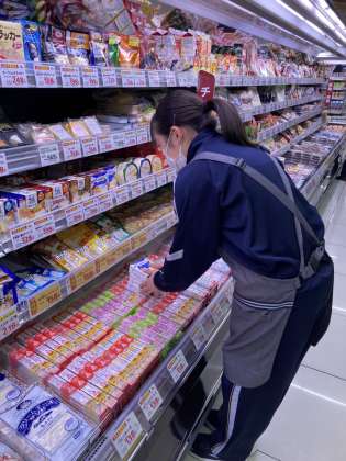 品出しをしています。ずっと冷蔵庫の前で冷えそうです。