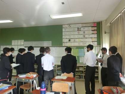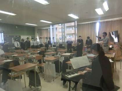 今日も合唱練習が行われています。模造紙に歌詞を書いて特訓中です。
