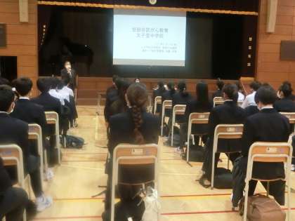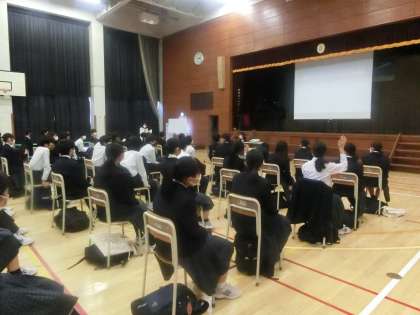 今日は、2年生対象に、看護師の方から、がんに関する講話を受けました。がんという病気について理解し、自分や家族の健康と命の大切さについて考えることができました。