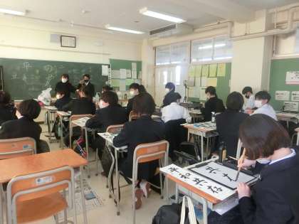 国語の授業で書写を学びました。「とめ」「はね」「はらい」などを意識しながら、集中して取り組んでいました。